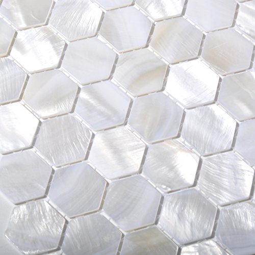 TST Mother Of Pearl Tiles White Hexagon Shinning Wall Deco Backsplash Shell Tile MOP04 (1 Sample 6 x 6 Inches)