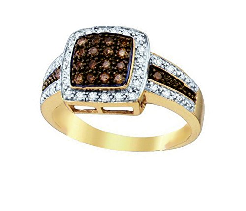 -. Title : 10K Yellow Gold Brandy Diamond Chocolate Brown Princess Shaped Queen Bee Ring 1/2 Ctw.