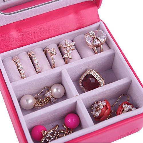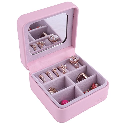 -. Title : GUANYA Small Jewelry Box With Mirror Faux Leather Storage Case