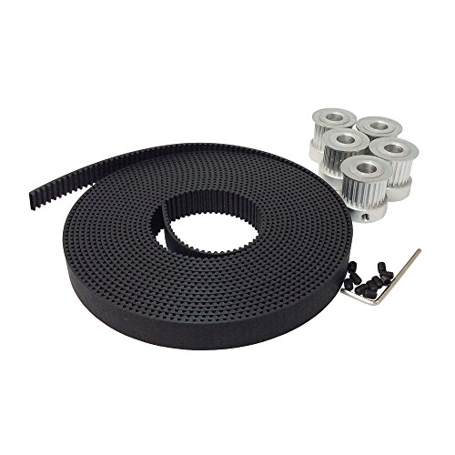 BEMONOC 5Meters 3M Open Ended Timing Belt Width 15mm Polyurethane Belt for Laser Engraving CNC Machines & 5pcs 24 Teeth HTD 3M Timing Pulley Bore 6.35mm