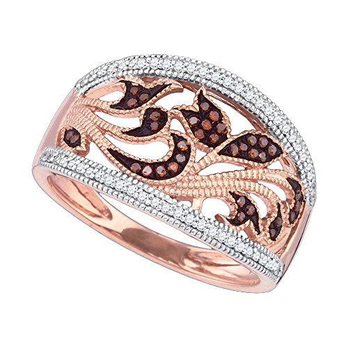 -. Title : 10K Rose Gold Dark Brandy Diamond Chocolate Brown Filigree Floral Band Ring 1/4 Ctw.