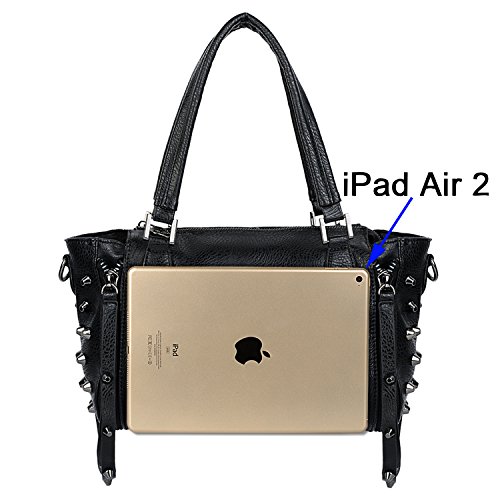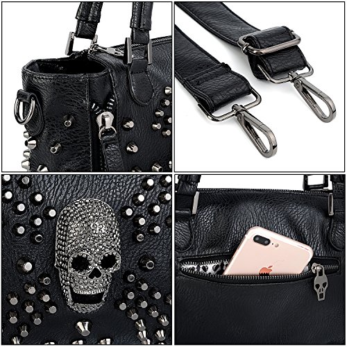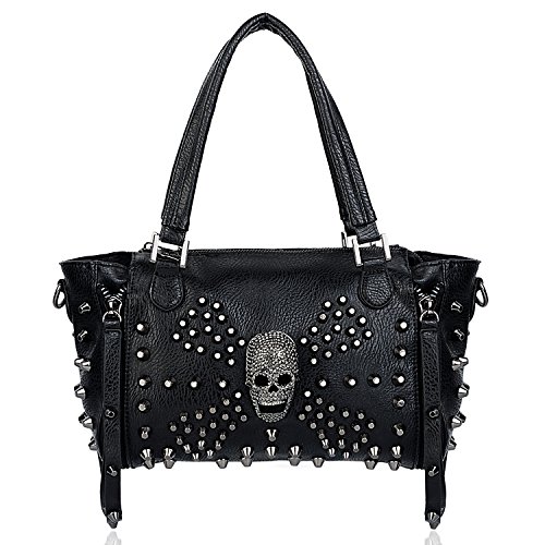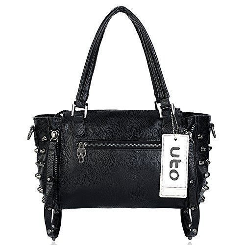 UTO Women Skull Bag Rivet Studded Handbag PU Leather Purse Satchel Shoulder Bags Black