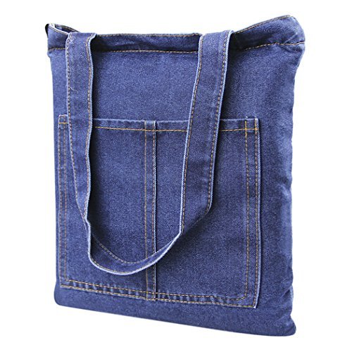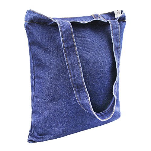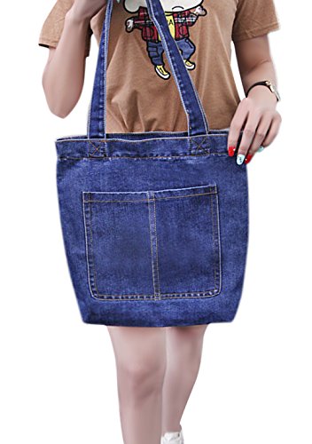 Casual Denim Handbag Shoulder Bag Purse Soft Jeans Shopping Bag Large Capacity Tote Holes Bag with Cell Phone Pouch for Girls Womens