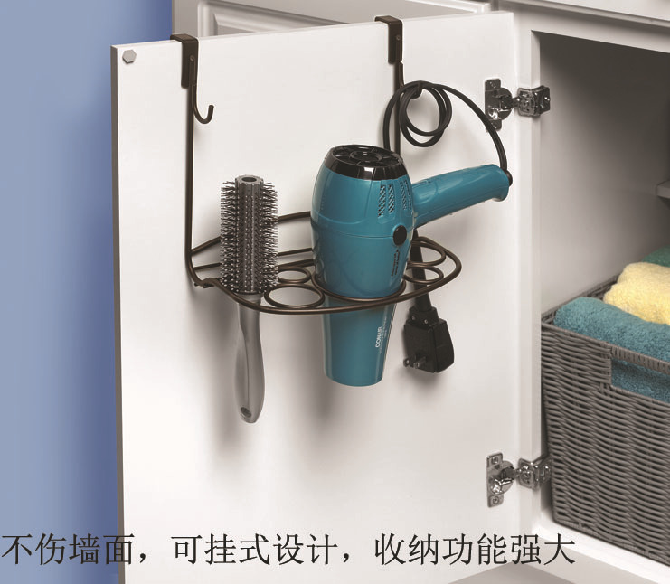 1. Creative new foreign trade door back-style hair dryer storage rack, very practical. Hook within the width of 2cm, the thickness of about 10-20mm plate can be hung; just hang the hook on the door, you can place items, when not removed at any time, very convenient to accept.