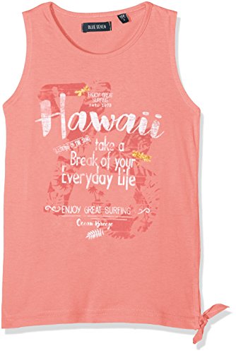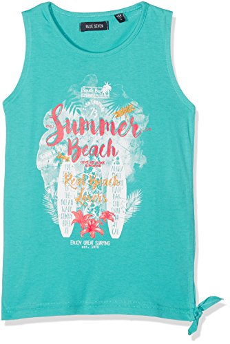 Armelloses Madchen Top mit sommerlichem Beach Motiv und Glitzer. Lassig an der Seite geknotet.