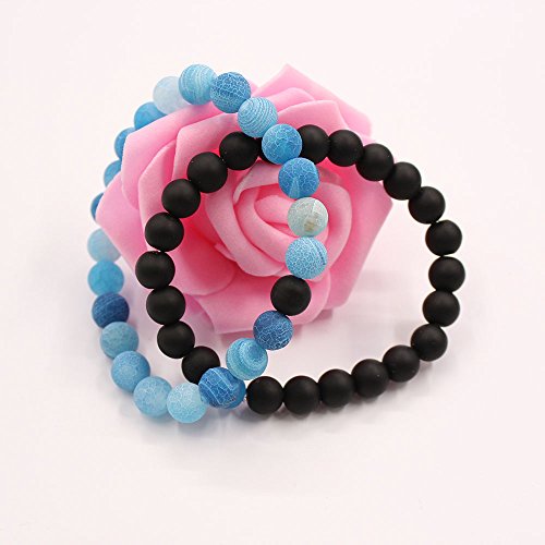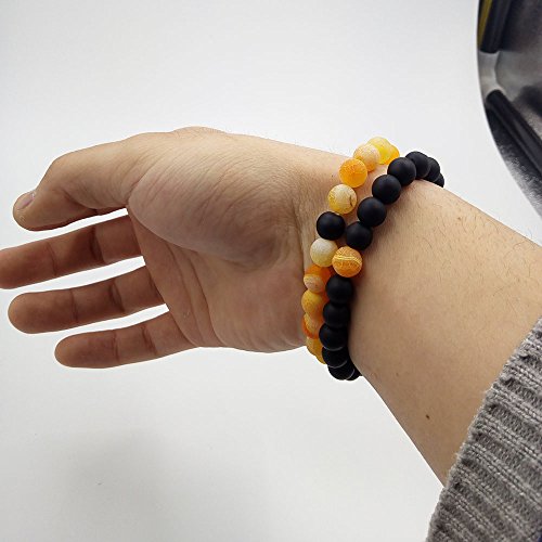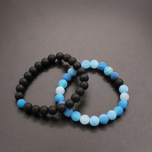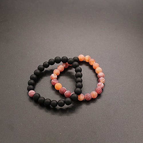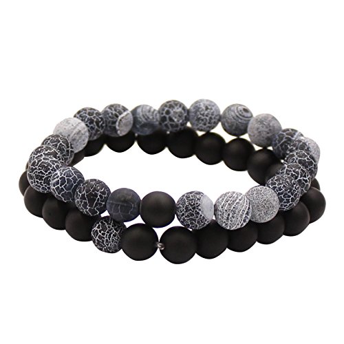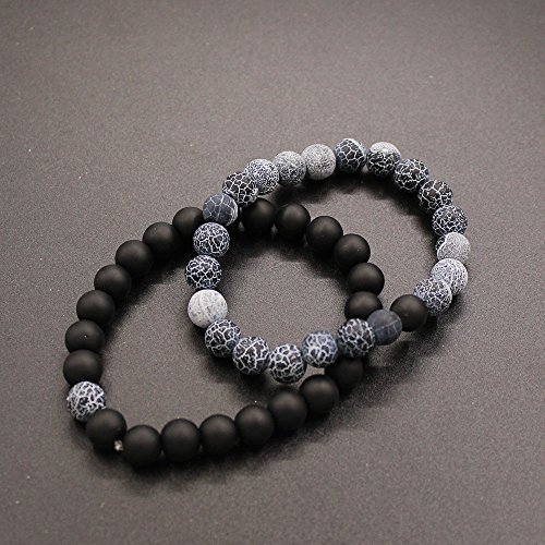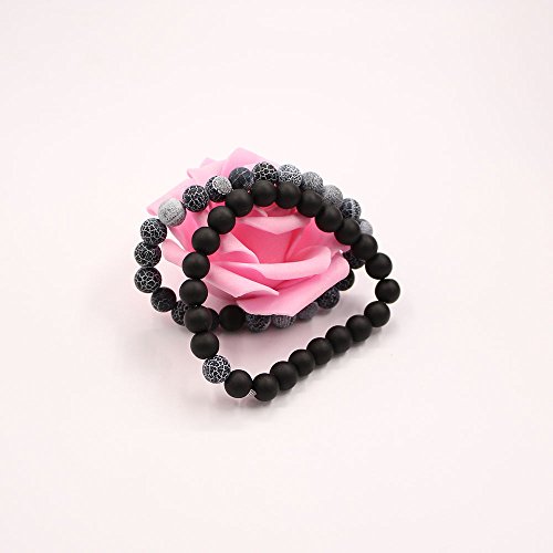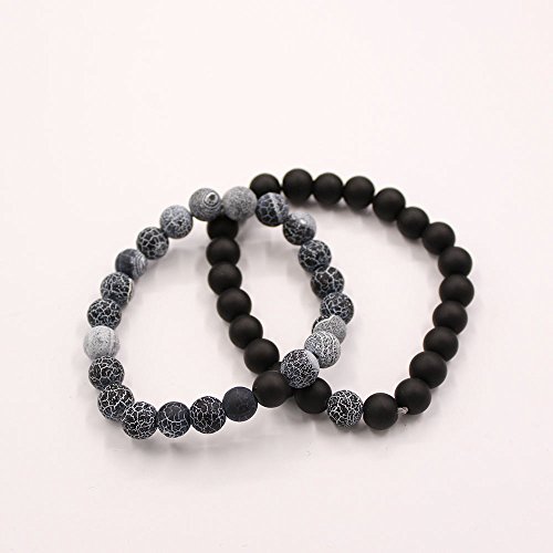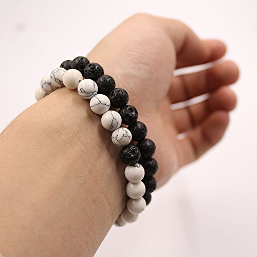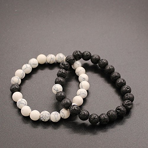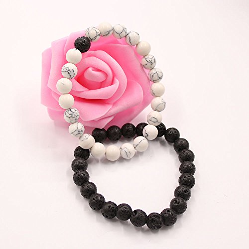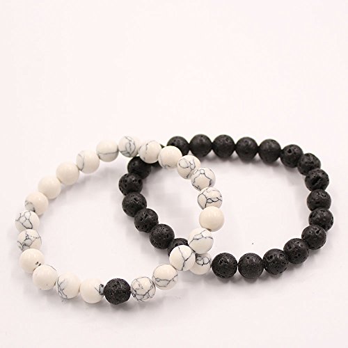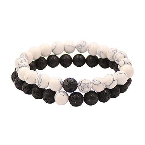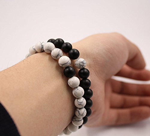 UEUC Parchen-Armbander Naturstein Entfernung Parchen-Armbander fur Liebhaber Paar Partner Schwarz Matt Achat & Weiss Howlite 8mm Wulst