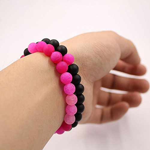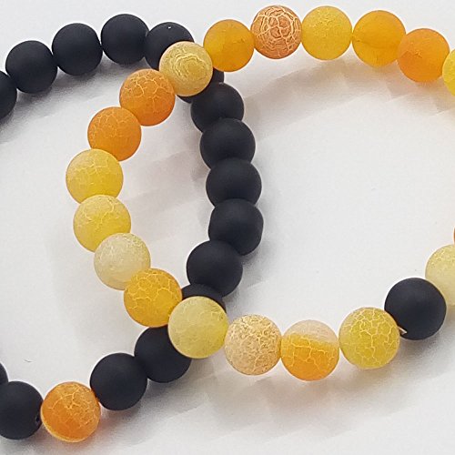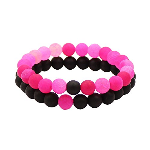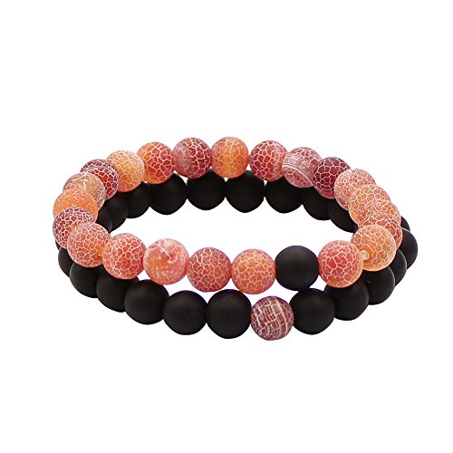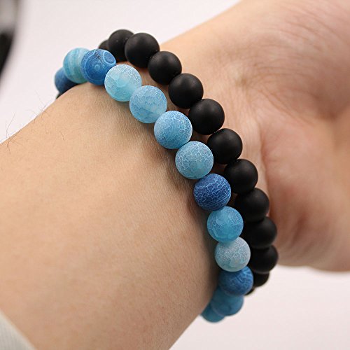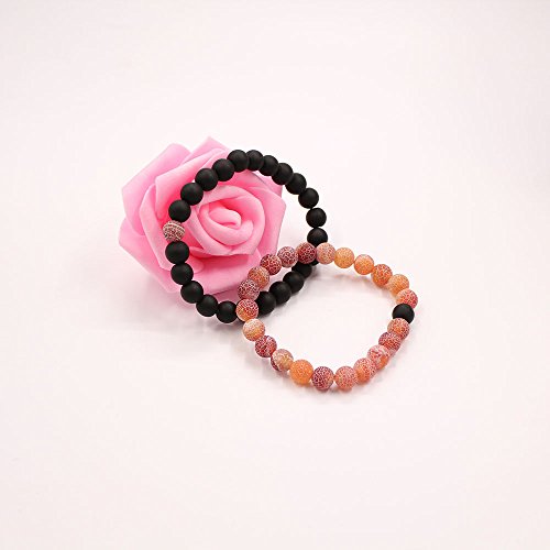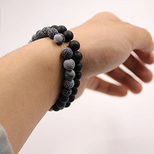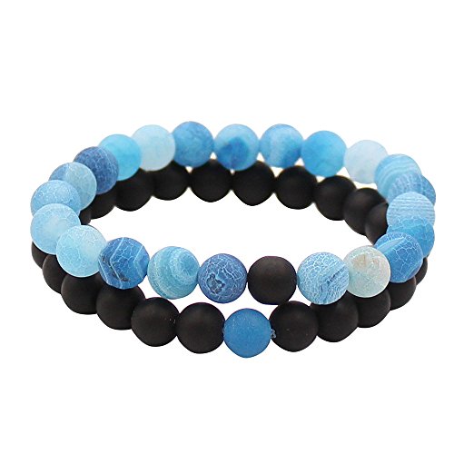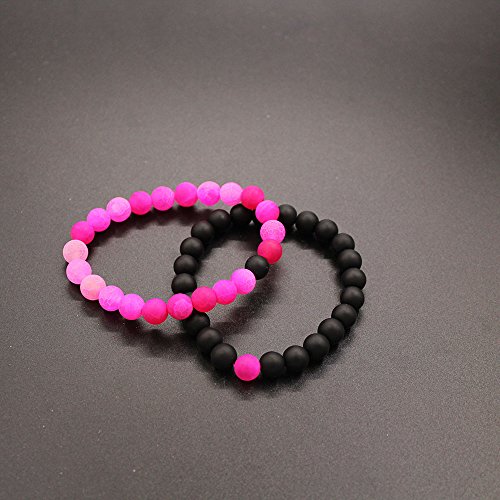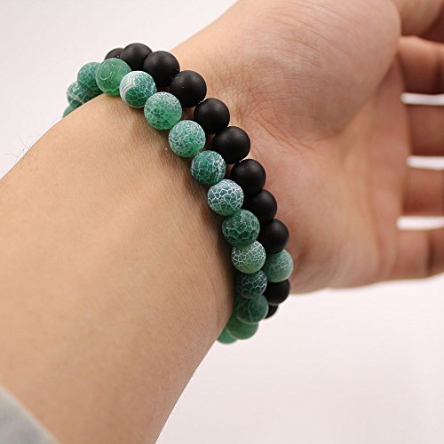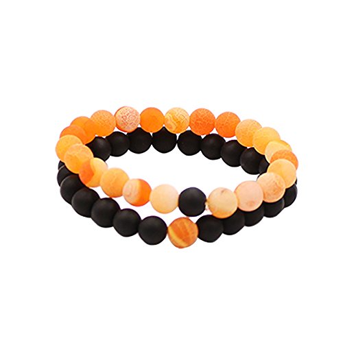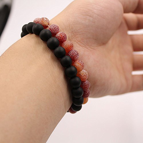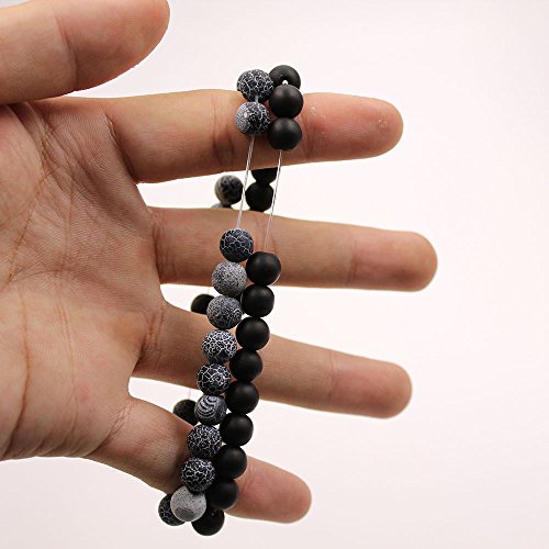 UEUC Parchen-Armbander Naturstein Entfernung Parchen-Armbander fur Liebhaber Paar Partner Schwarz Matt Achat & Weiss Howlite 8mm Wulst