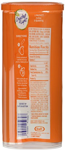 Pack of six, 1.5-Ounce (Total of 9-Ounce) 5 calories in one serving Gluten-free 90% fewer calories than leading beverages 99% caffeine free Brand : Crystal Light EAN : 0043000950807