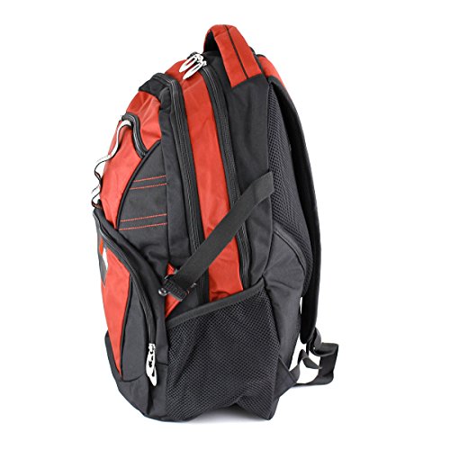 -. Feature : Store books, use 2 front pockets, 2 side mesh pockets, and an internal 15" laptop sleeve / Contains a heavy duty handle for carrying convenience / Contains a sunglasses slot on one of the back straps / Includes 2 compression straps for adjustability convenience / Back is padded with Airflow system mesh for better ventilation and comfort