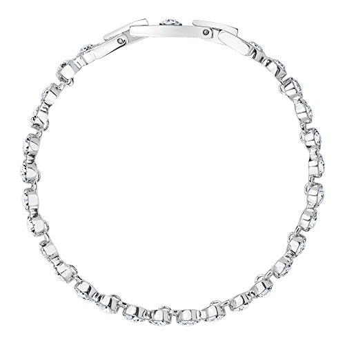 -. Feature : Swarovski Tennis Bracelet / Sterling Silver / Rhodium Plating / Secure fold-over clasp closure / Size: 7 inch