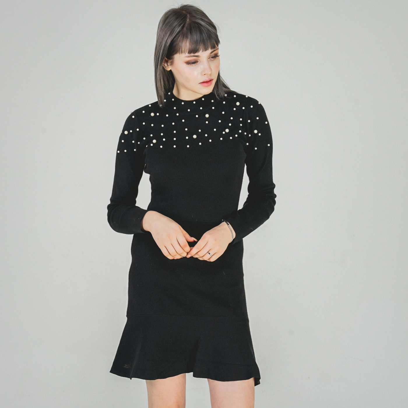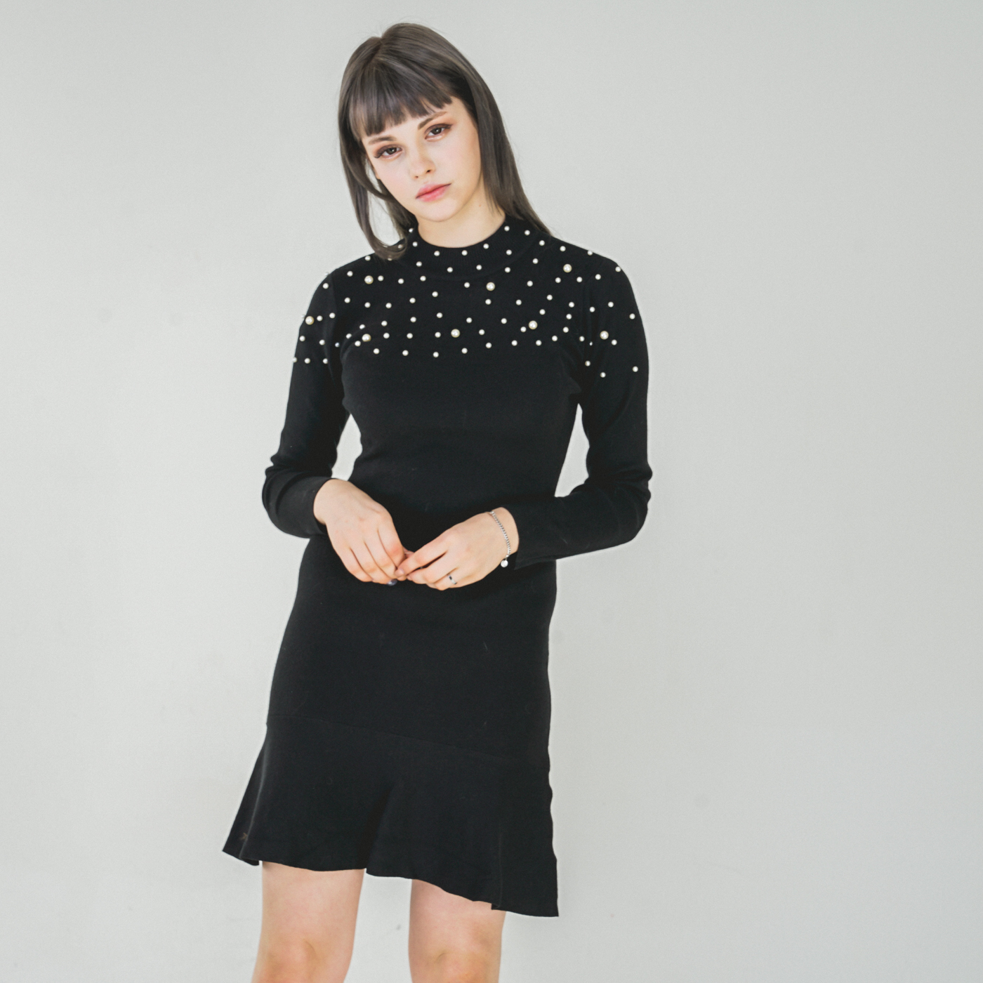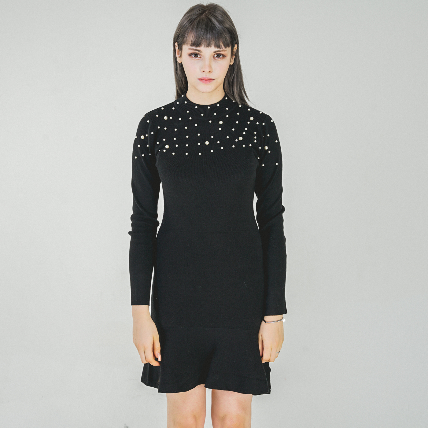 퀄리티 높은 페플럼 스타일의 니트원피스입니다.