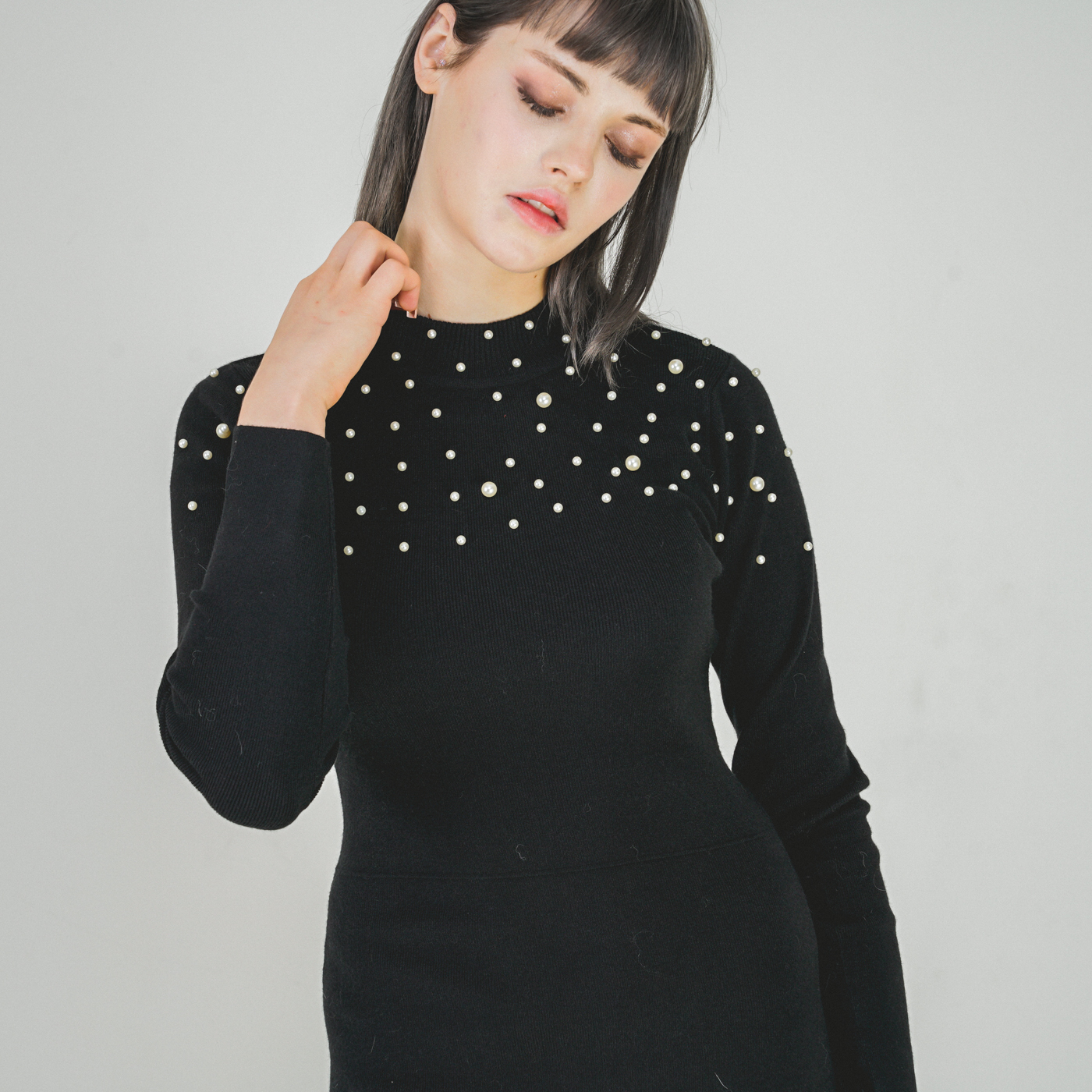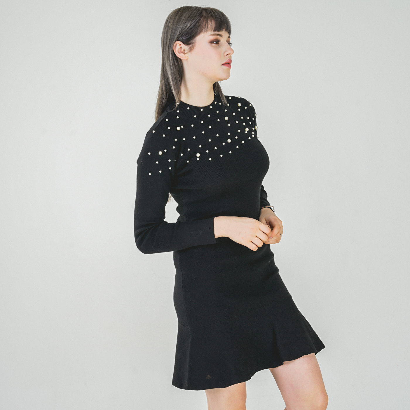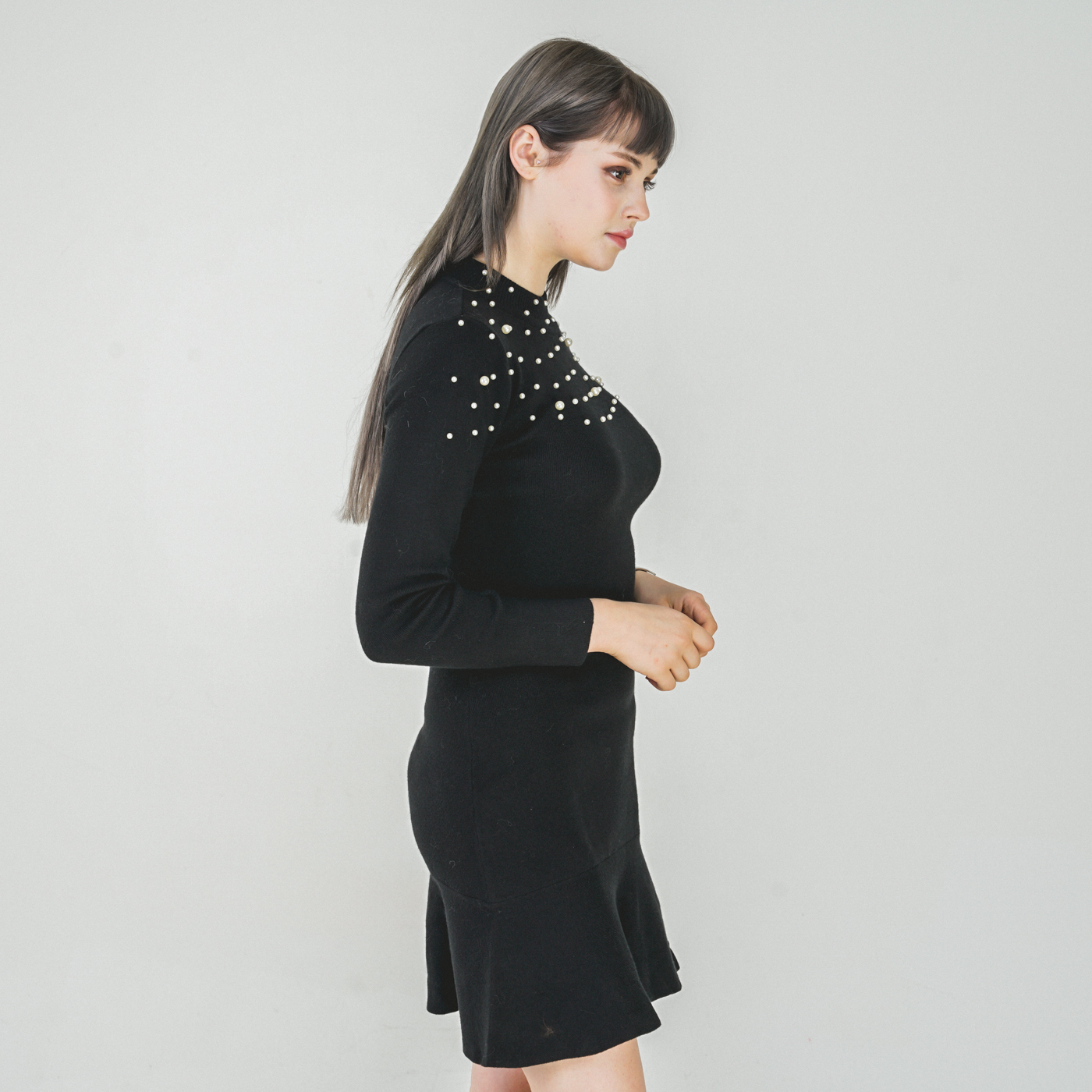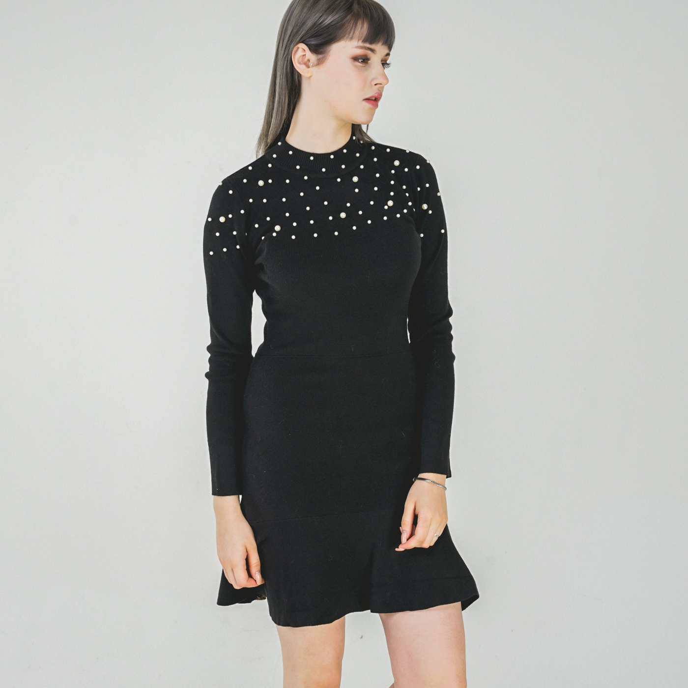 퀄리티 높은 페플럼 스타일의 니트원피스입니다.