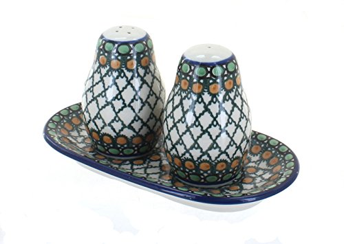 Polish Pottery Tranquility Salt & Pepper Shakers with Tray