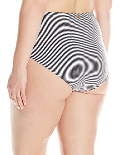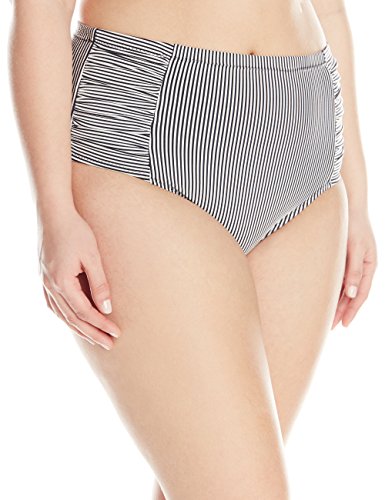 Jessica Simpson Women's Plus-Size Boardwalk Side Shirred High Waisted Bottom, Black Stripe, 0X