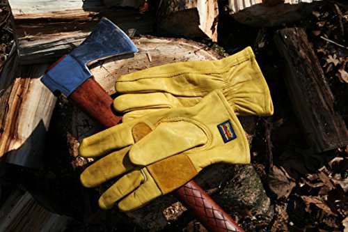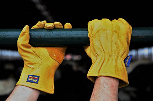 Water Resistant Leather Work Gloves, Grain Cowhide, Palm Patch, HydraHyde Technology, Large (1201L)