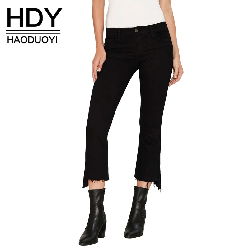 | HDY Haoduoyi Fashion Asymmetrical Fringe Trousers Women High Waist Female Calf-Length Pants Slim Solid Black Casual Pants | |||||||||||||||||||||||||||||||||||||||