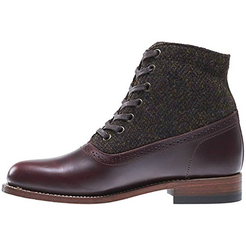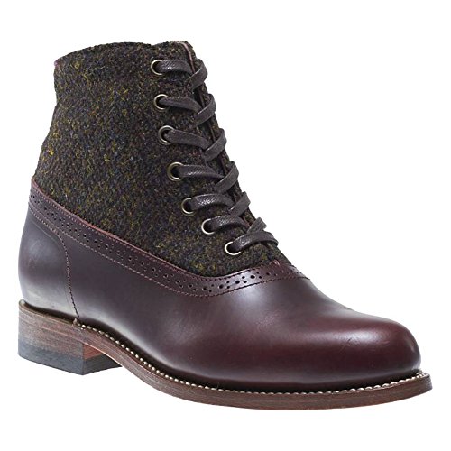 Binding : Apparel Product Description The Marcelle boot from Wolverine® offers a sleek, feminine update to a classically rugged shoe, creating a very modern and very beautiful style. Part of the 1000 Mile Collection. Upper made of either leather and canvas (Black Multi Leather color) or leather and Harris Tweed (Brown Multi Leather color). Traditional lace-up system for a secure fit. Goodyear™ welt construction. Leather lining for a comfortable fit and feel. Lightly cushioned leather footbed provides excellent underfoot comfort. Imported. Measurements: Heel Height: 1 in Weight: 1 lb Shaft: 6 in Product measurements were taken using size 7.5, width B - Medium. Please note that measurements may vary by size. 0