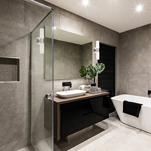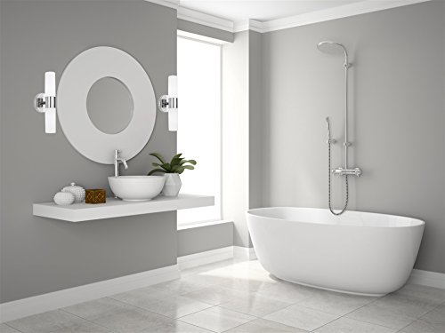 The Duo 14" Modern Wall Sconce features a unique up/down 2-Light design to jazz up any Modern home. The sconce shows off its true beauty with easily installed frosted glass shades and stunning Chrome finish. Its sleek and stylish look allows it to fit marvelously into any home giving bathrooms, vanities or powder rooms the perfect amount of illumination.