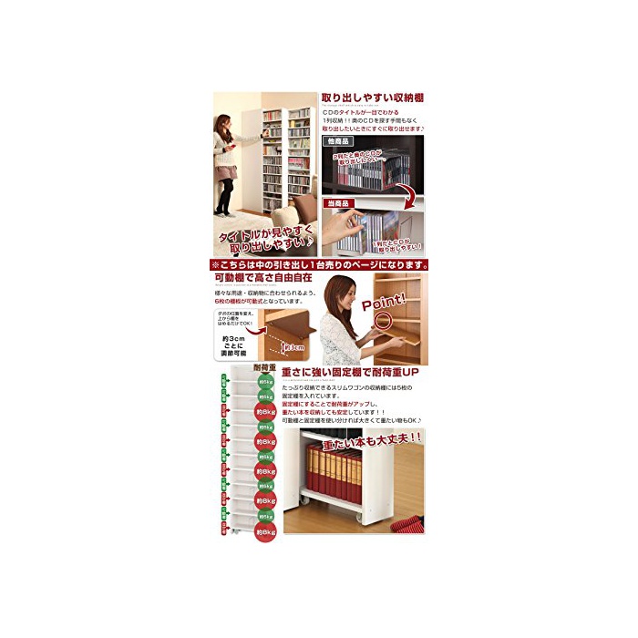 봉 가구 매거진 셸프 대용량 슬림 웨건 CDlak 매거진 lak 슬라이드 초박형 일본제