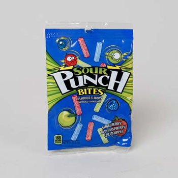 -. Title : SOUR PUNCH BITES 4 OZ PEG BAG STRAWBERRY,APPLE,BLUE RASPBERRY, Case Pack of 12