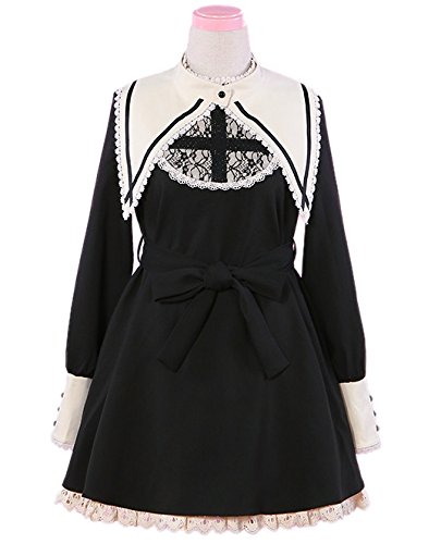 -. Title : Soufflsong レディース 【ブラック 黒十字ミニワンピース Aライン 長袖 ワンピース】黒 ロリータ ゴスロリ ゴシック クリスマス ミニ わんぴ
