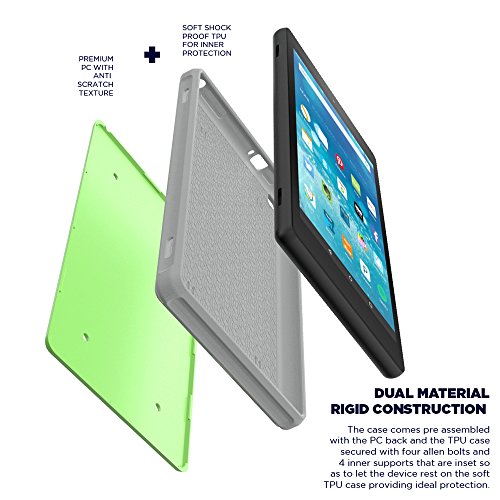 Fire HD 8 (6th Generation, 2016 Release) Case, Poetic QuarterBack [Corner/Bumper Protection] Dual Protection] - Stylish rugged PC+TPU Case for All-New Amazon Fire HD 8 (2016 Model) Green/Gray