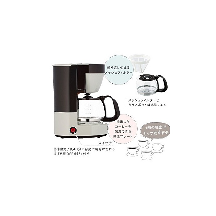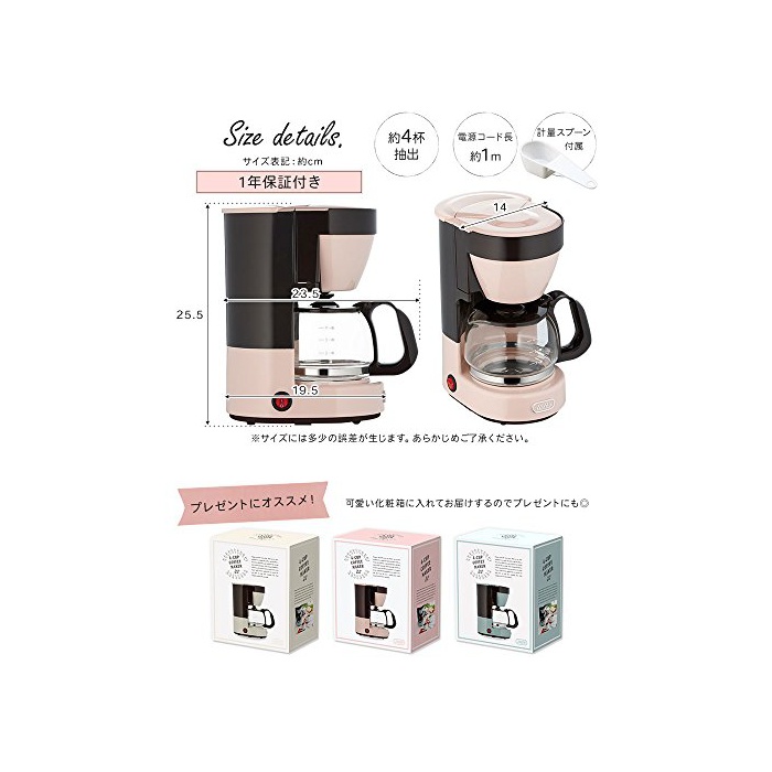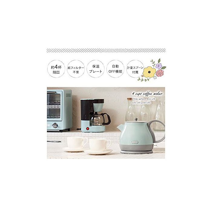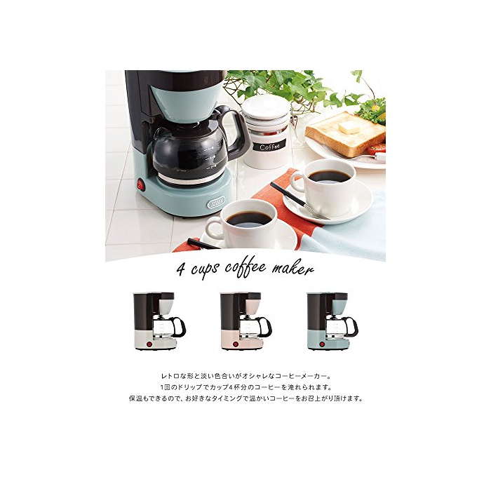 레트로인 형태와 희미한 색조가 멋진 커피 메이커.1회의 drip에 컵4잔분의 커피를 넣어집니다.보온도 할 수 있는 때문에,좋아하는 타이밍에 따뜻한 커피를 드시기 하실 수 있는.