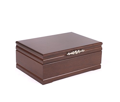 - Case is made of solid cherry wood and finished in mahogany. Hardware comes in brushed nickel.