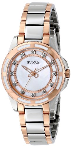 -. Binding : Watch -. Brand : Bulova -. Color : Rose -. Department : UNISEX -. EAN : 0696746388658 -. Feature : Due to a recent redesign by Bulova, recently manufactured Bulova watches, including all watches sold and shipped by Amazon, will not feature the Bulova tuning fork logo on the watch face. / Mineral domed / White mother of pearl dial / Stainless steel case and bracelet / Water resistant to 99 feet (30 M): withstands rain and splashes of water, but not showering or submersion -. Label : Bulova -. Manufacturer : Bulova -. Model : 98P134 -. MPN : 98P134 -. PackageQuantity : 1 -. PartNumber : 98P134 -. ProductGroup : Watch -. ProductTypeName : WATCH -. Publisher : Bulova -. ReleaseDate : 2013-04-15 -. Size : Standard -. Studio : Bulova -. Title : Bulova Women's 98P134 Diamond Dial Watch -. UPC : 696746388658 -. Warranty : 3-Year Manufacturer Warranty