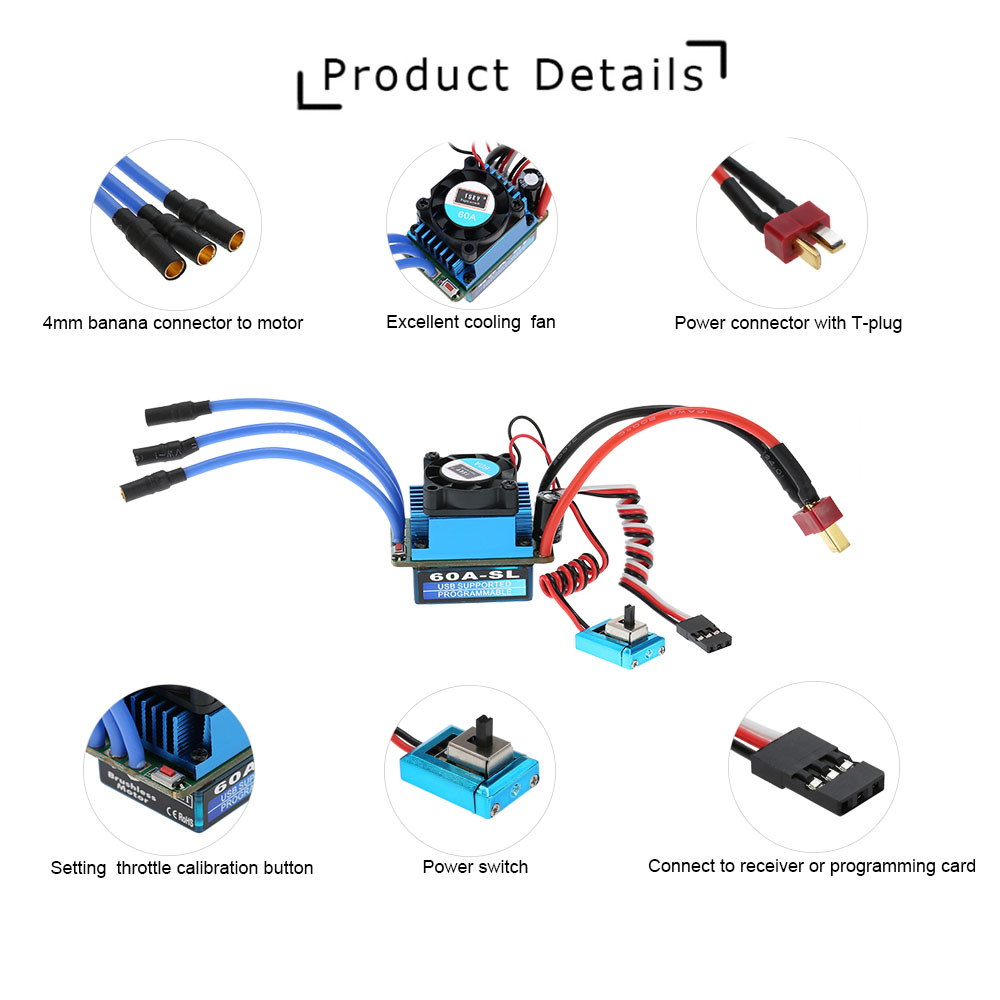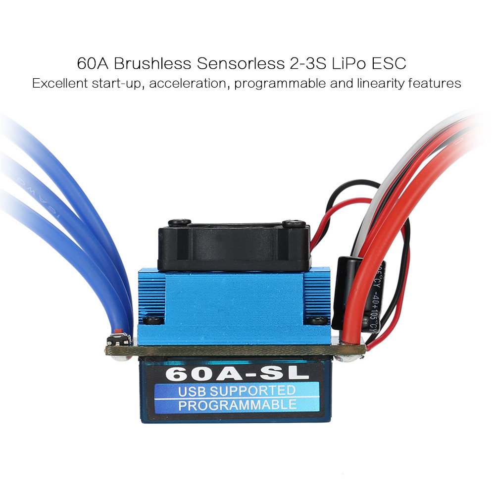 This 60A brushless ESC is built with the highest quality components to ensure high efficiency operation. When you connect the ESC with the program card, you could tune and tweak all your favorite settings, that add up to an incredible RC driving experience.