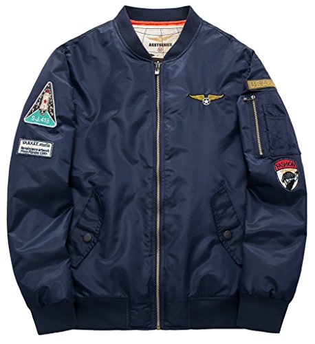 -. Feature : Men's loose style bomber cargo flight jcket / Two Pockets: two side pockets/ one pocket with zipper on sleeve/ one deep inside pocket / Light Weight running jacket, keep warm in cold weather / Detailed patches and rib bounded neck / Feel free to concact us if you any any problem
