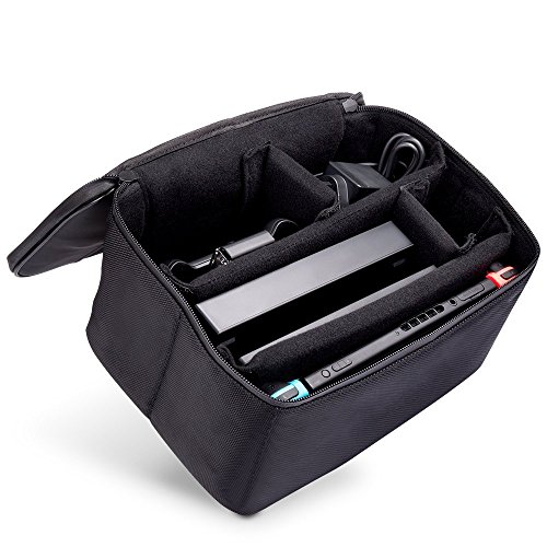 -. Feature : 対応機種:Nintendo Switch/New3DS/New3DSLL/3DS/3DSLL / 自由に変更できる:メインとなる収納部は、お使いのゲーム機本体と主な付属品を保持するために十分なスペースがある。バッグの内部には厚手の生地で傷防止、衝撃吸収性に優れています。ひっかき傷から保護できます。仕切り板は4枚、入れるアクセサリーに合わせて自由にレイアウトできる。 / 驚異の収納力:Nintendo Switch本体、Joy-Conグリップ/Joy-Con充電ブリップ、Nintendo Switchドック、Joy-Conストラップ、ACアダプターが収納可能です。着脱式の仕切り板が付属しており、小物などを分類して収納できる 。 / 持ち運び便利:ちょっとした持ち運びに便利な手持ちハンドル付きで、身体に負担をかけずにサクサク移動できる。旅行時のサブバッグとしても活躍します。 / 使用楽々:開口部を大きく一気に開くことができ、取り出しやすいダブルファスナーを採用しています。素早く本体を取り出せます。