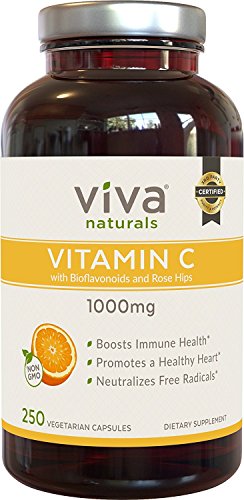 -. Title : Viva Naturals Premium Non-GMO Vitamin C with Bioflavonoids and Rose Hips, 1000mg, 250 Veg Caps