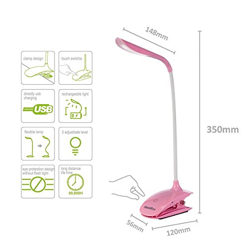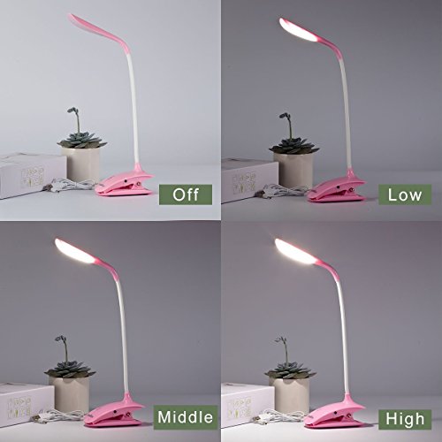 HandAcc Clip Desk Lamp Dimmable LED USB Reading Light with Sturdy Gooseneck for Desk, Bed Headboard and Computers(4W, Pink)