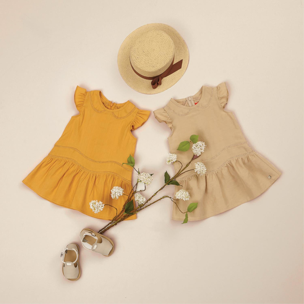 세련되 보이는 베이지 컬러의 원피스입니다..