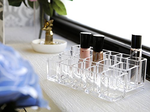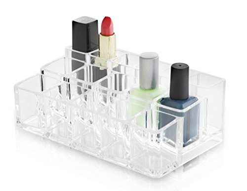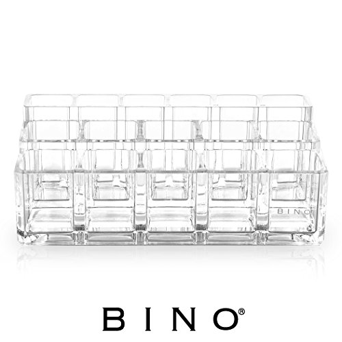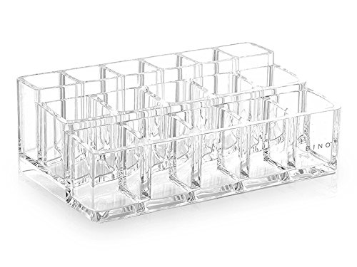 BINO 'The Lip Sync' 16 Compartment Acrylic Lipstick and Nail Polish Organizer Tray, Clear and Transparent Cosmetic Beauty Vanity Holder Storage