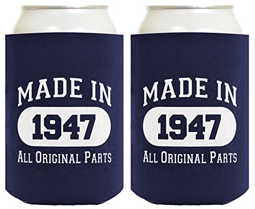70th Birthday Gift Coolie Made 1947 Can Coolers Coolies 2 Pack Navy