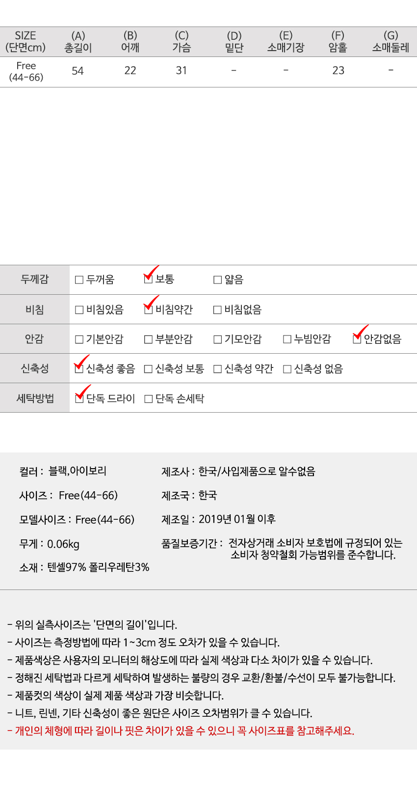 | 특이 사항 | 배송, 변경, 반품 환불에 대한 문의는 위 연락처로 문의 주세요. | ||