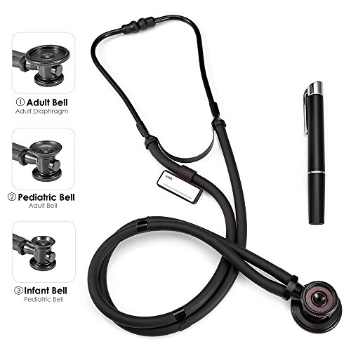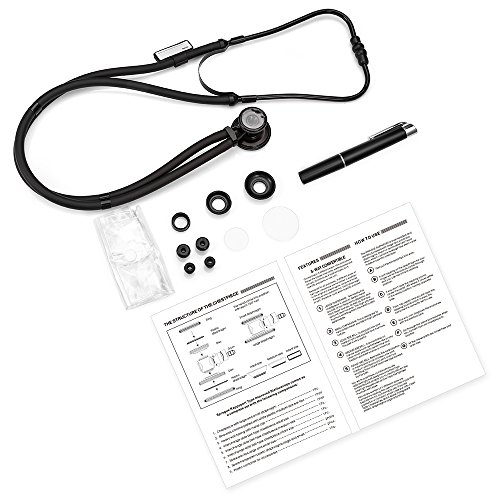 The stethoscope is a lightweight diagnostic instrument that delivers sensitive acoustics and professional performance.?They are packed in a compact small case put with 3 bell type chestpieces and 2 spare transparent plastic diaphragms. It is a reliable medical equipment for you. Features: - Lightweight and durable The super-duty, lightweight zinc alloy dual head chestpiece, aluminum alloy ear-hook are precisely machined and for high performance and durability - High sensitivity The high sensitivity of stethoscope enables you to clearly discern low and high frequencies and to hear the faintest murmurs with ease - Package Content 1 x Stethoscope 1 x Name Tag 1 x Pen Light 2 x Spare Diaphragms 3 x Spare Bells 2 x Pair of Spare Ear Tips 1 x English User Manual Product weight: 0.48lb? Package weight: 0.77lb? Package Size ( L x W x H ): 11.61 x 5 x 1.57 inches 0 |