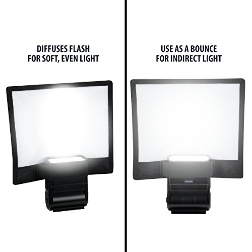 Hook connection strap attaches to the camera and the diffuser spreads the light to give you even illumination, helping to eliminate harsh reflections and shadows