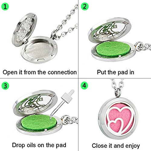 - ❤Magnetic Locket - The strong magnetic closures and solid back protection of the pendant firmly secure the felt pad and favorite oil without the slightest possibility of the oil touching your skin or staining your dress.