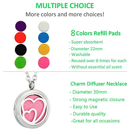 - ❤Colorful Pads - Our colorful felt pads are made of a premium cotton. They absorb and diffuse fragrance over time, creating a perfectly personal scented jewelry piece. Reapply your own favorite essential oil over and over for continued use of felt pads.