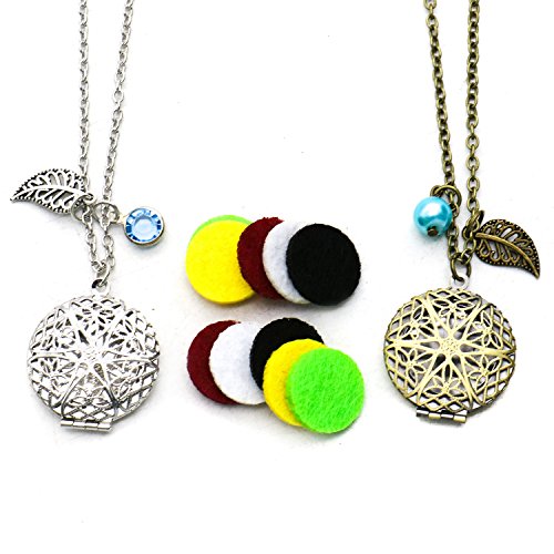 Rugjut 2 Set Necklace Antique Silver Essential Oil Diffuser Aromatherapy Pads Adjustable With Colorful Diffusing Refill Pads