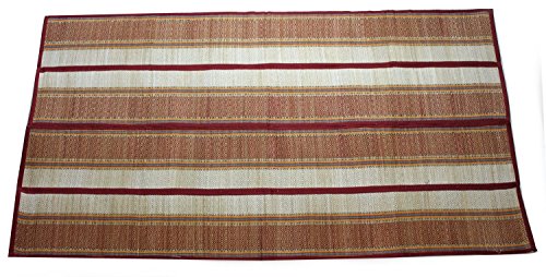 SouvNear Multipurpose Straw Floor Mat - Eco-Friendly Folding Extra Long and Wide - 3 x 6 Feet - Red-White-Green. Handmade natural 'green' fold able straw yoga/beach/picnic/floor mat. Green in the sense that it's made by hand using natural material.