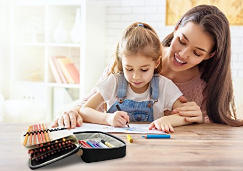 PENCIL CASE WITH COMPARTMENTS - VERSATILE AND MULTI-FUNCTIONAL PENCIL HOLDER FOR TEEN GIRLS, BOYS AND ADULTS - You can store, organize and carry 72 colored pencils, or water color pencils and so much more. The interior zippered pocket is roomy enough for small notepads, eraser, paper clips, etc.