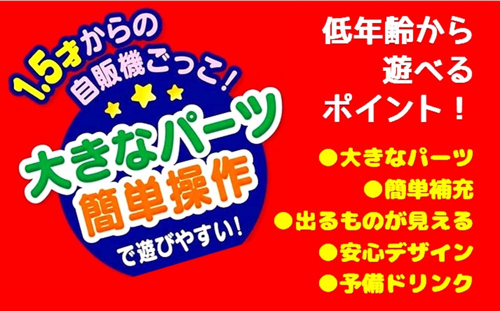 "Easy" to play from the age of 1.5 Vending machine playing! Put a coin and buy a drink, you can buy a drink! Light is also shiny! A cute real drink! <Points that are easy to play even at a young age> 1 larger part ... a larger drink