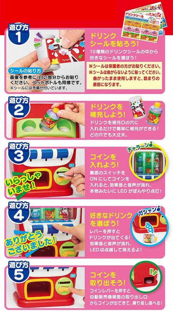 · Easy to play with coin parts! 2 Easy replenishment · · · Drinks are put in any place from the top! 3 Things to see are visible · · · · Motion is visible and intuitive! 4 Reliable design · · · Rounded design