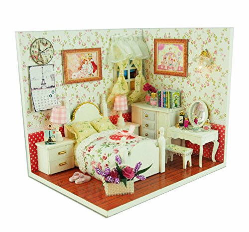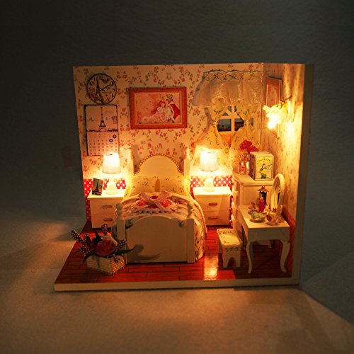 -. Feature : All furnitures and things shown in the pictures are included. Dust Proof Cover is included / Color Instruction.Each steps has pictures to show you how to assemble. / DIY house is the miniature of real house, All the materials are almost the same as real house so cute and beautiful / 1:24 scale, Finished Product Size: 5.9*4.5*5.1 (inches) / It's very romantic to send it to friends, lover, family, kids... Means more to make it by yourself!