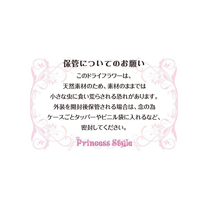 품질에 대해서:발색과 컨디션이 좋은 책갈피에 말린 꽃을 생산자 보다 직접 매입→일본 국내에서 선별 소구분(세분)→포장까지 일관해 품질관리 하고 있습니다.