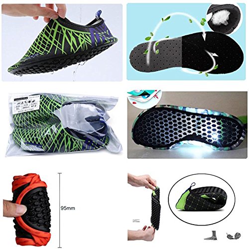 -. Feature : VARIOUS SIZE: From XS to XXL for Kids,Women and Men. / ULTRA-LIGHTWEIGHT : 33g-43g. / PERFECT FIT : Stretchy material make it easy to wear and take off and do any water activities comfortably. / SAFTY PROTECTION: These water socks make you feel like barefoot. Meanwhile your feet are protected by the Textile soles. Come with transparent zipper bag. / IDEAL FOR ANY ACTIVITY: Our aqua socks are perfect for swimming, surf, scuba, snorkeling, beach walking, yoga, wakeboarding, sailing, parasailing, boating, kayaking, windsurfing,fin socks and etc.